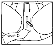 3. After the cylinder is inserted, take the 2″ innermost strap (B), with the slit, and bring the strap from between the patient’s legs up over the crotch of the brief.